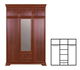 Klasická šatníková skriňa s dvierkami a ornamentami. Po stranách skrine sa nachádzajú dvierka, za ktorými sú vo vnútri v hornej časti zavesené vešiakové tyče. V strede sa nachádzajú dvierka so zrkadlom, vo vnútri za dvierkami sú police a pod nimi sú umiestnené dve zásuvky. V hornej časti skrine sú vedľa seba umiestnené 3 široké dvierka.