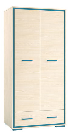 Dvojdielna šatníková skriňa so zásuvkou v spodnej časti. V pravej časti sa nachádza vešiaková tyč a v časti ľavej štyri poličky. Zásuvka má posilnené dno, pre zvýšenie nosnosti.