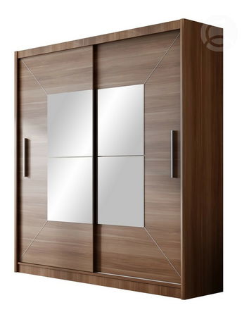 Šatníková skriňa s posuvnými dverami v modernom prevedení. Korpus aj dvierka sú z kvalitného LTD a farebné prevedenie je slivka. Dvere obsahujú praktické zrkadlo. Usporiadanie políc viď. perokresba. Dodávame v demontovanom stave.