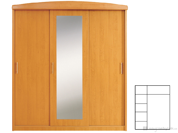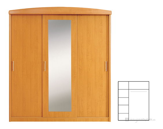 Trojdverová šatníková skriňa so zasúvacími dverami a so zrkadlom uprostred.