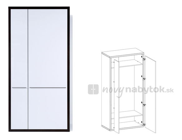 Moderná šatníková skriňa, ktorá jemnou zvislou líniou rozdeľuje dvierka na dve časti - užšiu a širšiu. V šatníkovej skrini budete mať dostatok miesta pre vaše oblečenie. Vo vrchnej a spodnej časti skrine sa nachádzajú police pre ďalšie vaše doplnky.