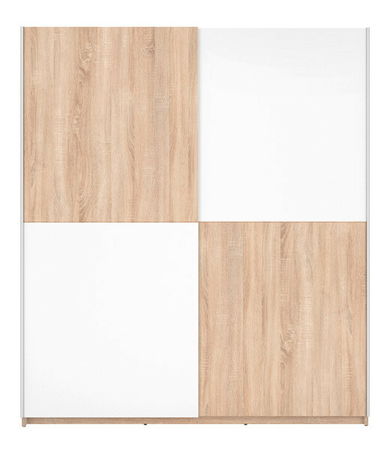 Uložiť vaše oblečenie už nebude pre vás problém. Táto šatníková skriňa je priestranná a má pekný moderný dizajn, ktorým rozhodne skrášlite vaše spálne a interiéry. Skriňa má posuvné dvere, vnútri má dve vešiakové tyče a dve poličky v hornej časti. Ku skrini si viete priobjednať ďalšie poličky. Front skrine je tvorený zo štvorcov vo farebnom prevedení dub sonoma a biela.