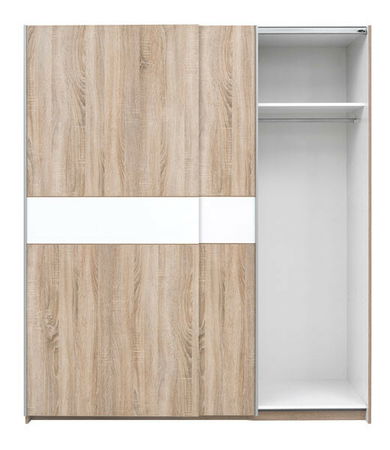 Šatníková skriňa, ktorá vám poskytne dostatok úložného priestoru pre vaše oblečenie a doplnky. Skriňa je veľmi praktická a hodí sa aj do menších interiérov. Má posuvné dvere a vo vnútri sa nachádzajú dve vešiakové tyče a dve poličky v hornej časti. Farebné prevedenie skrine je dub sonoma v kombinácii s bielou.