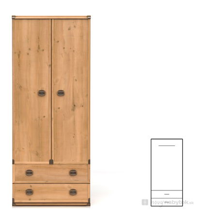 Krásna šatníková skriňa, ktorá čerpá z westernového dizajnu. Skriňa je vhodným doplnkom do študentských alebo detských izieb. Skriňa má vešiakovú tyč, kam si odložíte oblečenie a iné doplnky. V jej spodnej časti sa nachádzajú dve praktické zásuvky.