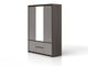 Priestranná šatníková skriňa, ktorá má moderný minimalistický dizajn. V ľavej časti sa nachádza vešiaková tyč pre vaše oblečenie a v pravej sú praktické police. Uprostred skrine sa nachádza zrkadlo. V dolnej časti sú dvoje menšie dvierka a dve menšie zásuvky na rôzne doplnky. Jednoduchý dizajn skrine vystihuje aj absencia úchytov na dvierkach a zásuvkách. Dvierka a zásuvky majú skosené hrany pomocou ktorých sa otvárajú.