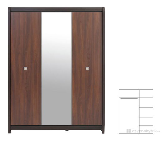 Šatníková skriňa s poličkami a vešiakovou tyčou. V strednom paneli sa nachádza zrkadlo.