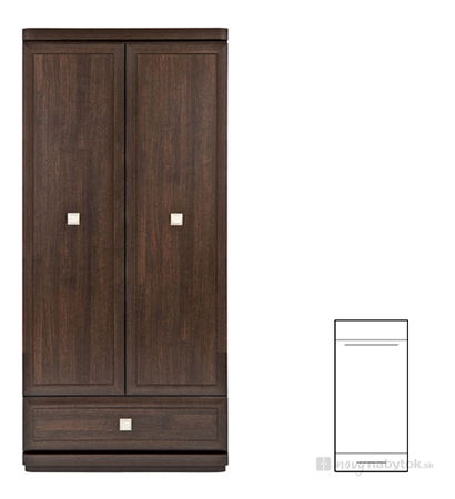 Dvojdverová šatníková skriňa Oregon s jednou zásuvkou v spodnej časti.