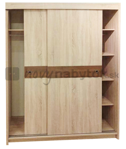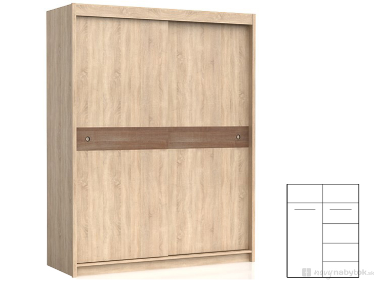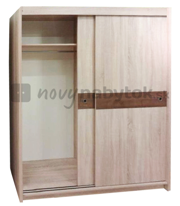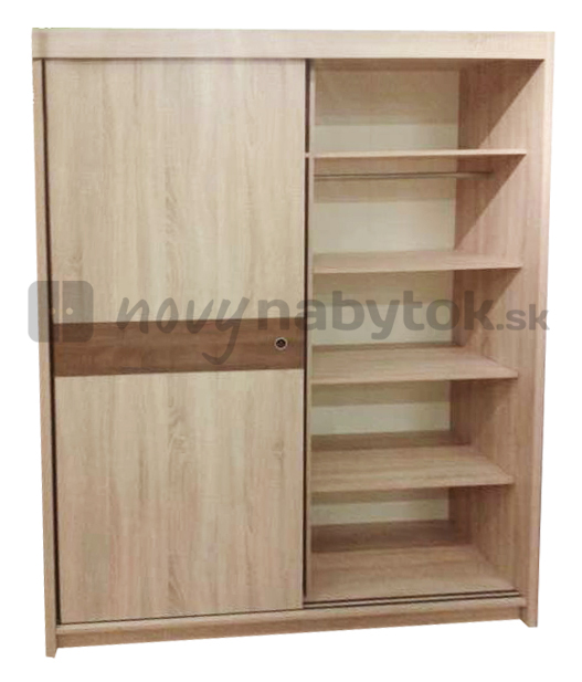Moderná dvojdverová šatníková skriňa s posuvnými dverami ponúka dostatok úložného priestoru pre Vaše oblečenie. Pod hornou poličkou sa nachádza vešiaková tyč. V šatníkovej skrini sa nenachádzajú police. V prípade potreby je možné si ich priobjednať.