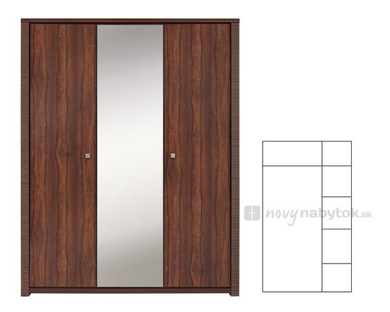 Priestranná šatníková skriňa A_SZF3D renomovanej značky BRW zo série Senegal je charakteristická pre túto seriu svojími farebnými prevedeniami. Skriňa je k dispozícií v rôznych farebných prevedeniach tmavších aj svetlejších farieb. Skriňa je trojdverová, kde v jednej časti sa nachádzajú 4 poličky a druhá širšia časť je vybavená systémom na zavesenie Vašich vecí. Skriňa je skutočne priestranná, takže Vám poskytne dostatok úložného priestoru, na jej výrobu bolo použité kvalitné kovanie TANDEMBOX, ktoré zaručí tiché a mäkké zatváranie.