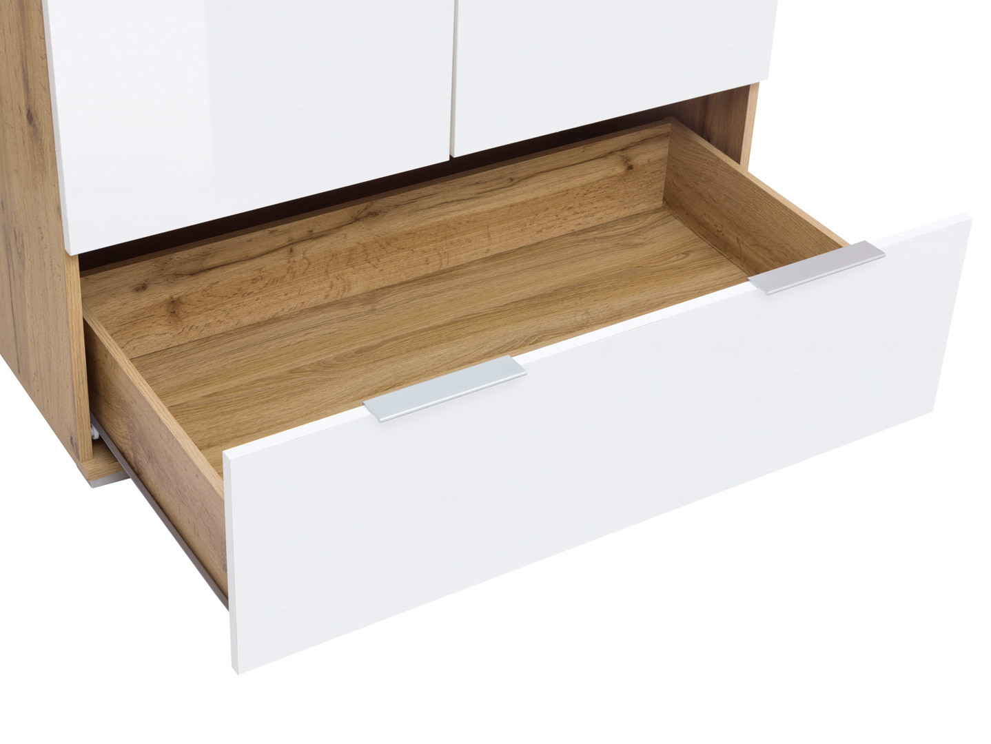 Nájdite Vášmu štýlovému oblečeniu štýlový priestor na úschovu. Šatníková skriňa svojím farebným prevedením pekne presvetlí Vaše interiéry. Skriňa má dvoje dvierka a disponuje vešiakovou tyčou na zavesenie oblečenia. Do šikovnej zásuvky v spodnej časti skrine si viete umiestniť ďalšie dopnky a bielizeň. Dvierka a zásuvka majú tenšie podlhovasté úchyty.