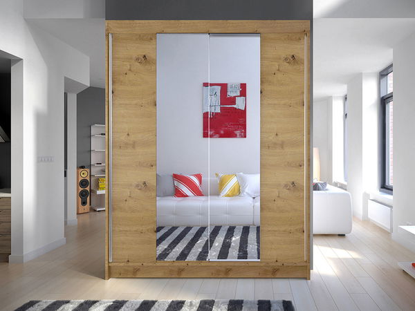 ZobraziťŠatníková skriňa - Chantal 2 (artisan) s výškou 200 cm, šírkou 150 cm a hĺbkou 58 cm je veľmi priestranným úložným riešením. V nej môžete uložiť nielen svoje oblečenie, ale aj oblečenie ostatných členov domácnosti. Napriek svojim veľkým rozmerom sa táto štýlová šatníková skriňa skvele zapadne do interiéru a pridá mu eleganciu._x000D_ _x000D_ Je vybavená posuvnými dverami s zrkadlovými panelmi, ktoré opticky zväčšujú priestor miestnosti. S rôznymi veľkosťami políc je možné správne roztriediť oblečenie a na pozdĺžnu tyč je možné zavesiť ramienka na formálnejšie príležitosti. Táto priestraná šatníková skriňa vám poskytne dostatok úložného miesta a pomôže vám udržať poriadok vo vašom šatníku.