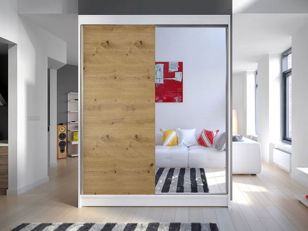 ZobraziťPriestranné vnútro tejto skrine umožňuje uložiť nielen vaše oblečenie, ale aj oblečenie ostatných členov domácnosti. Napriek svojim veľkým rozmerom sa táto štýlová šatníková skriňa dokonale zlúči s interiérom, pritom nevyčnieva._x000D_ _x000D_ Posuvné dvere šatníka sú pokryté zrkadlovými panelmi, ktoré opticky zväčšujú miestnosť. _x000D_ _x000D_ Vďaka rôznorodým veľkostiam policiek a pozdĺžnej tyči sa môžete ľahko organizovať a udržovať poriadok vo vašom šatníku. Na formálnejšie príležitosti môžete použiť ramienka na pozdĺžnej tyči._x000D_ _x000D_ Šatníková skriňa Chantal je ideálnym riešením pre tých, ktorí hľadajú štýlový a praktický spôsob, ako usporiadať a skryť svoje oblečenie.