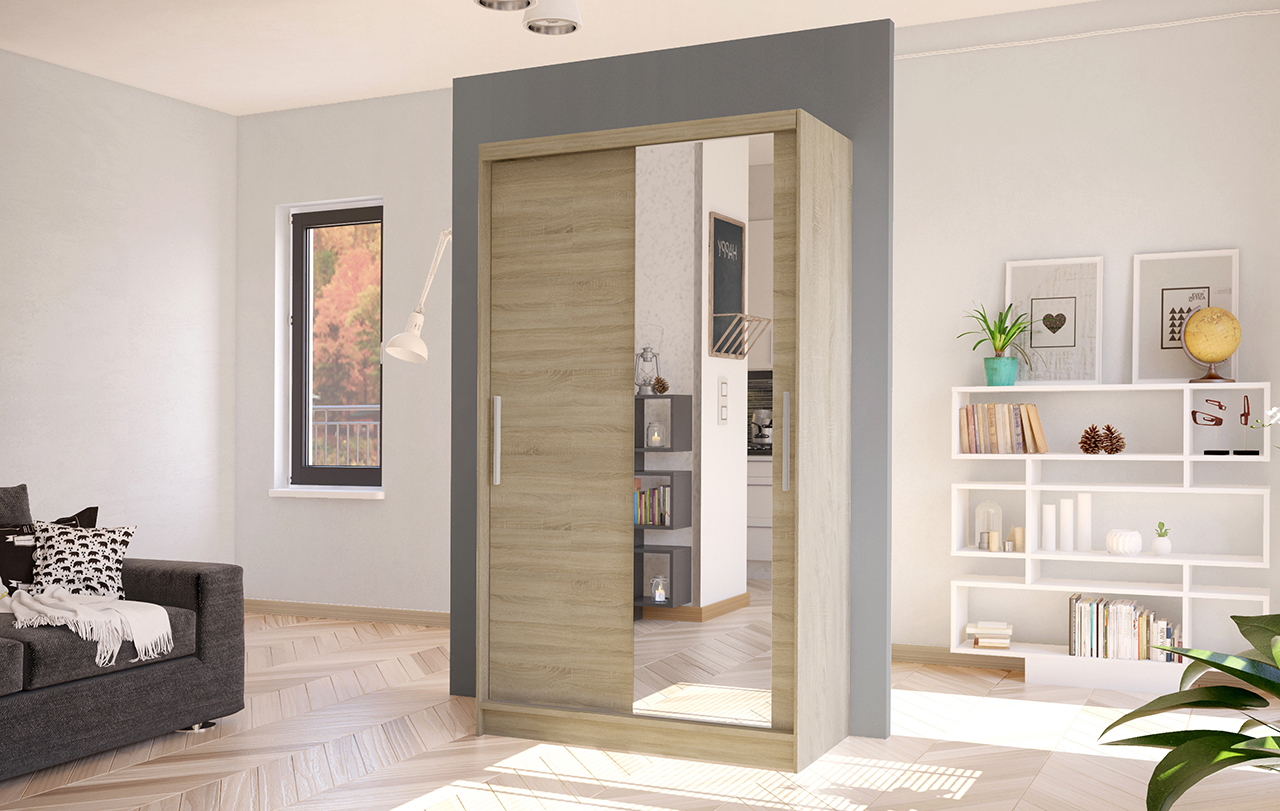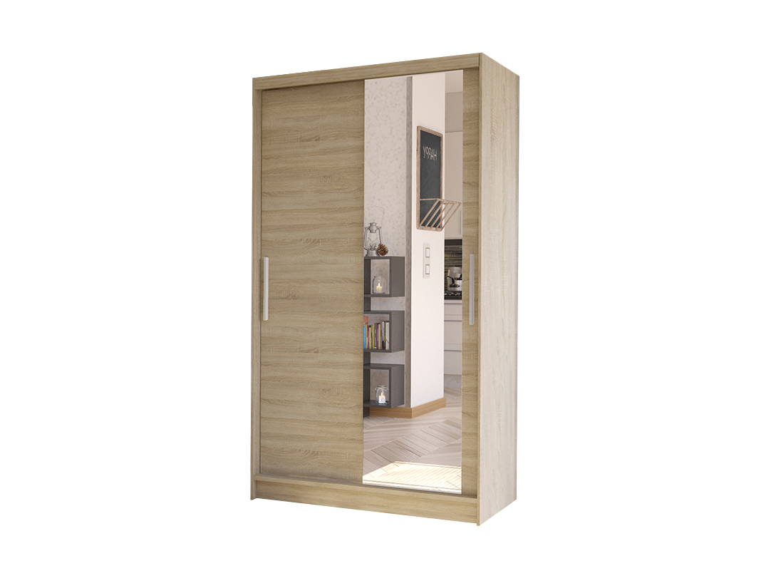 Šatníková skriňa Coletta III (sonoma) vysoká 200 cm hlboká 58 cm Sonoma popis: Šatníková skriňa je praktický a štýlový kus nábytku, ktorý sa dokonale hodí do spálne alebo obývačky. Táto skriňa má klasický vzhľad a jej farebné prevedenie je veľmi vkusné. Korpus, deliace priečky a police sú vyrobené z laminovanej dosky s hrúbkou 16 mm. Dvere sú posuvné s hliníkovými vodidlami Sevroll Micra, ktoré majú doživotnú záruku. Na prednej strane dverí je lesklé lacobel sklo. Šatník obsahuje zrkadlo a má ABS hrany. Počet dverí je 2 a kľučka je vo forme hliníkovej lišty pozdĺž dverí. Skriňa je balená do dvoch balíkov, obsahujúcich všetky potrebné prvky pre montáž a návod na montáž. Rozmery balíka č. 1 sú 206x64x9 cm a váži 52 kg. Rozmery balíka č. 2 sú 191x66x5 cm a váži 30 kg.