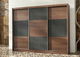 Šatníková skriňa s troma posuvnými dverami v modernom prevedení. Korpus aj dvierka sú z kvalitného LTD. Korpus je vo farbe dub sterling. Dvere majú kazetové prevedenie vo farbách dub sterling a hnedý betón. Usporiadanie políc viď. perokresba. Vo vnútri skrine sa nachádzajú 2 zásuvky. Dodávame v demontované stave.