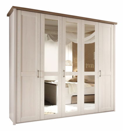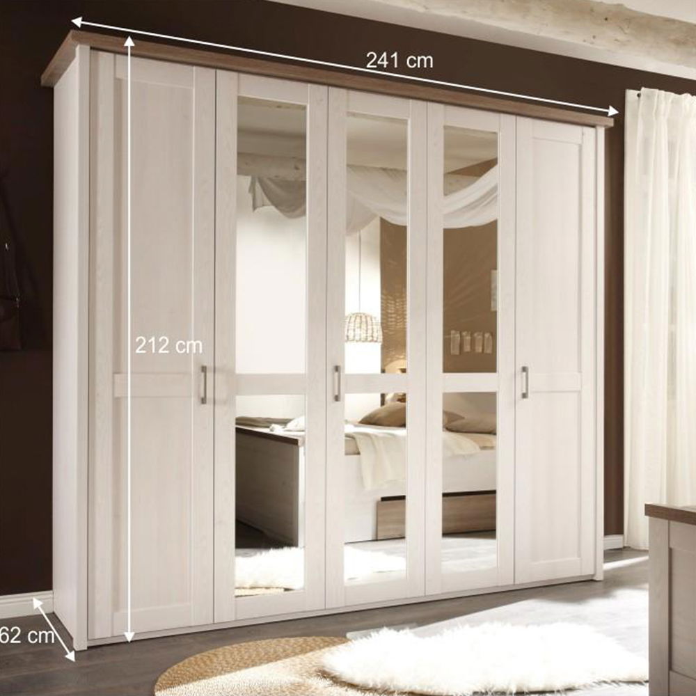 Šatníková skriňa Dawa (biela + dub sonoma) výška 212 cm hĺbka 62 cm Biela + Dub sonoma truflový Popis: Táto elegantná šatníková skriňa má 5-dverový dizajn, pričom 3 dvere sú vybavené zrkadlom. Je vyrobená z DTD fólie a dodáva sa v demonte. Rozmery skrine sú 241 x 62 x 212 cm. Materiál korpusu je 16/36 mm a skriňa obsahuje DTD fóliu a zrkadlo. Farby, v ktorých je skriňa k dispozícii sú dub sonoma truflový a pinia biela. Táto skriňa je vhodná pre každého, kto hľadá praktické a elegantné riešenie pre svoj šatník.