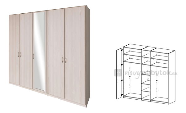 Šatníková skriňa Decodom Cassanova S 5 DV jaseň coimbra (so zrkadlom)