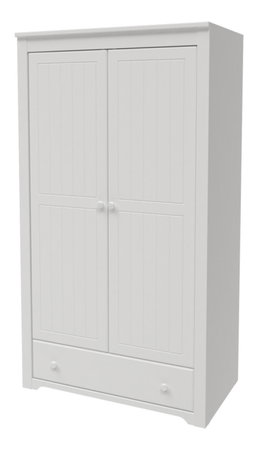 Šatníková skriňa s policou, zásuvkou a vešiakovou tyčou. Vyrobená z laminovanej drevotrieskovej dosky a MDF dosky. Nosnosť zásuvky je 15 kg.