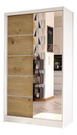 ZobraziťŠatníková skriňa Delana III (biela + dub artisan) s výškou 200 cm a hĺbkou 58 cm je praktický a štýlový nábytok vhodný pre vašu spálňu alebo obývačku. Kombinácia bielych a dubových farieb dodáva skrini klasický vzhľad. Korpus, deliace priečky a police sú vyrobené z laminovanej dosky (16mm), čím sa zaručuje ich odolnosť a trvanlivosť. Dvere sú posuvné typu Sevroll MICRA s hliníkovými vodidlami a doživotnou zárukou. Na prednej strane dverí sa nachádza lesklé lacobel sklo a zrkadlo. Skriňa obsahuje kľučku vo forme hliníkovej lišty pozdĺž dverí a v balení nájdete všetko pre svojpomocnú montáž, vrátane montážneho návodu. Rozmery balíka č. 1 sú 206x64x9 cm/52 kg a rozmery balíka č. 2 sú 191x66x7 cm/30 kg. Objednajte si Šatníkovú skriňu Delana III a užite si jej praktickosť a štýl.