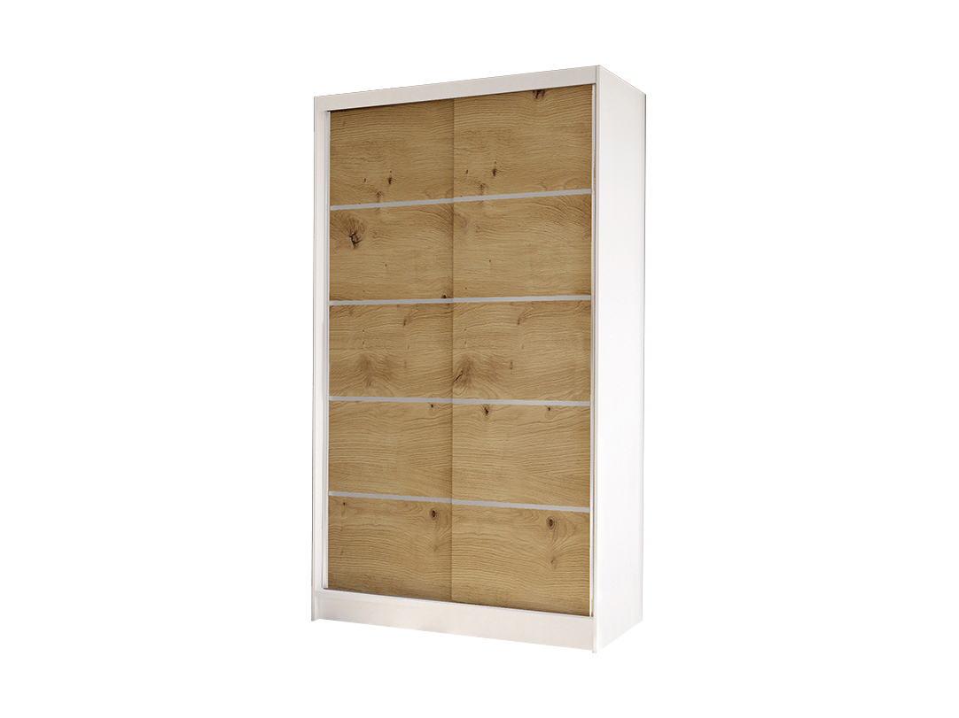 Šatníková skriňa Delana IV (biela + dub artisan) s výškou 200 cm a hĺbkou 58 cm je praktický a štýlový kus nábytku, ktorý sa skvele hodí do spální alebo obývačiek. Výhodou je kombinácia bielych a dubových častí, ktoré spolu vytvárajú klasický štýl. Skriňa je vyrobená z laminovanej dosky s hrúbkou 16 mm, deliace priečky a police sú tiež z tohto materiálu. Dvere sú posuvné s hliníkovými vodidlami, ktoré majú doživotnú záruku. Skriňa nemá zrkadlo, ale má lesklé dvere na prednej strane. ABS hrany sú samozrejmosťou. V balení nájdete všetky potrebné diely a montážny návod pre jednoduchú montáž. Skriňa je rozdelená na dva balíky s rozmernosťami 206x64x9 cm/52 kg a 191x66x7 cm/30 kg. S touto šatníkovou skriňou získate nielen praktický úložný priestor, ale aj moderný kúsok nábytku vhodný do každého interiéru.