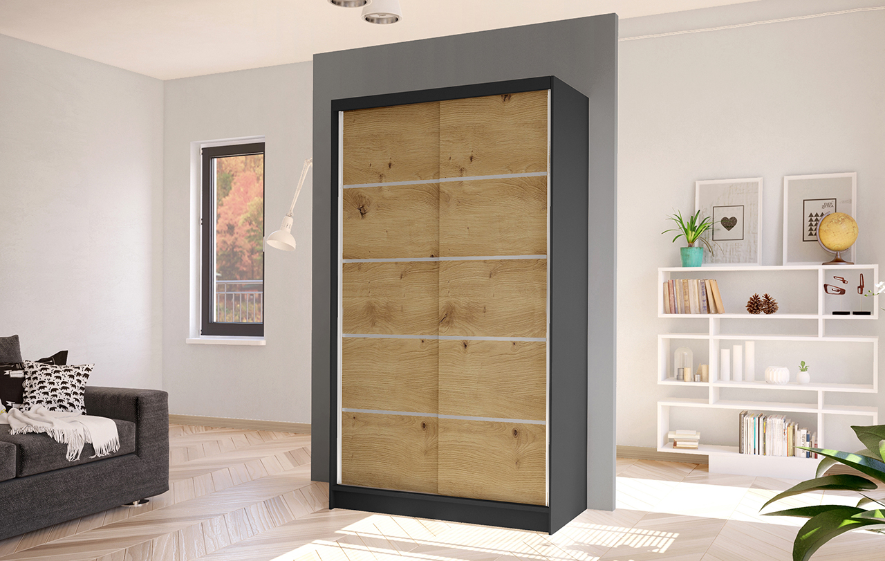 Šatníková skriňa Delana IV (čierna + dub artisan)