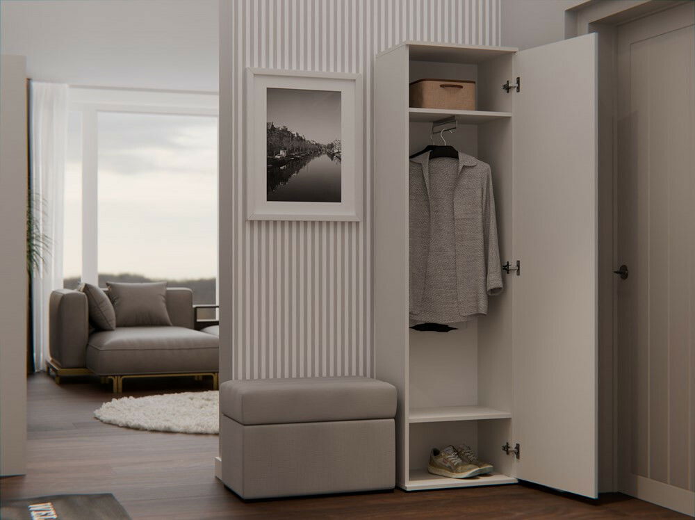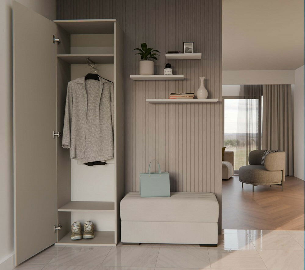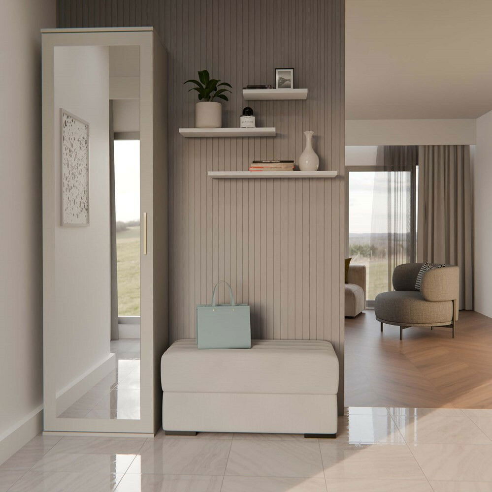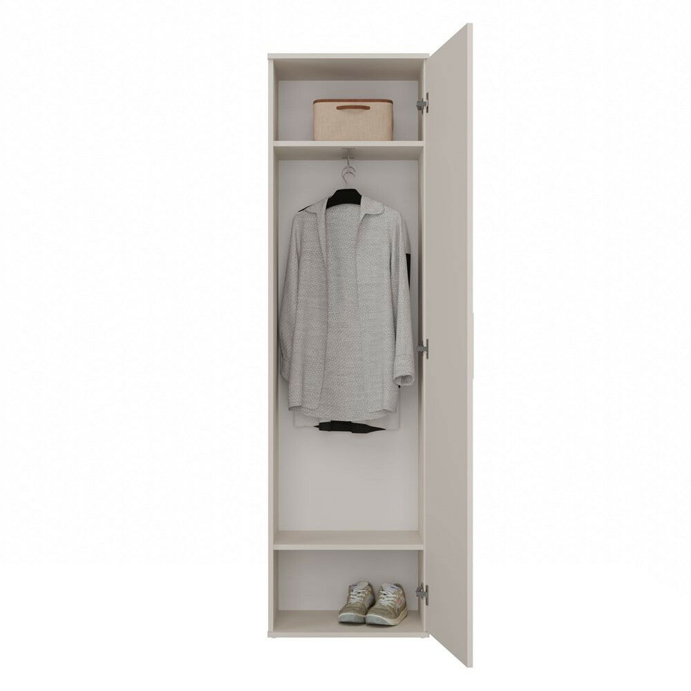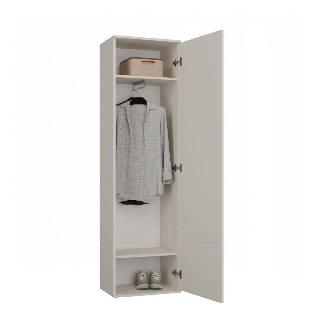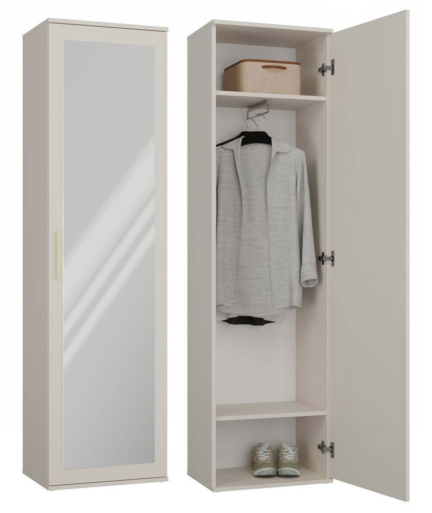 Šatníková skriňa Dialogos 1 v elegantnej kašmírovej farbe je ideálnym riešením pre tých, ktorí hľadajú kombináciu funkčnosti a štýlu. S moderným dizajnom, ktorý spája jednoduchosť a eleganciu, táto skriňa ponúka praktické vnútorné usporiadanie s dvoma priestrannými poličkami a úchytom na vešanie, čo zabezpečuje pohodlné uskladnenie oblečenia a doplnkov. Zrkadlové dvere opticky zväčšujú priestor a dodávajú interiéru šmrnc. Montáž je univerzálna, čo umožňuje prispôsobiť skriňu vašim potrebám. Tento kvalitný produkt je skvelou voľbou pre každú domácnosť.