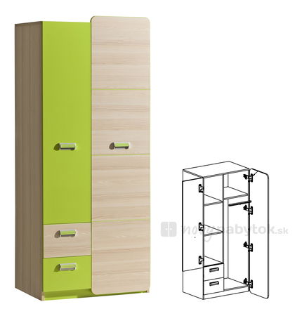 Šatníková skriňa Echo L1 zelená