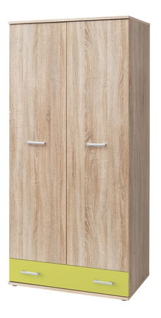 Dvojdverová vešiaková skriňa Emio má moderný dizajn a je veľmi praktická. Je vhodná najmä do detských a študentských izieb a poskytne dostatok potrebného priestoru pre oblečenie, prípadne hračky alebo knihy. Dodáva sa v peknom farebnom prevedení dub sonoma v kombinácii so zelenou.