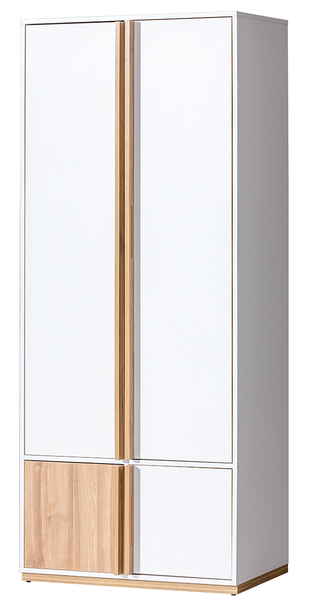 Šatníková skriňa Evanton je bezpečným a štýlovým miestom pre vaše oblečenie. Užitočná bude v predsieni na odkladanie kabátov, ale aj v šatníku alebo v spálni na ukladanie oblečenia. Dvojdverová skriňa má v jednej časti 3 poličky, druhá je vhodná na dlhšie oblečenei a kabáty, pretože má iba jednu poličky v hornej časti.