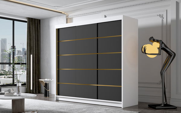 ZobraziťŠatníková skriňa je ideálnou voľbou pre tých, ktorí uprednostňujú praktickosť pred dizajnom. Skriňa má posuvné dvere a ponúka dostatok úložného priestoru pre vašu bielizeň, oblečenie a doplnky. V ľavej časti skrine sa nachádza vešiaková tyč a v pravej časti sú poličky. V hornej časti je ďalší úložný priestor. Skriňa je vyrobená z laminovanej dosky s hrúbkou 16 mm a má hladký biely povrch. Systém posuvných dverí zaisťuje pohodlie a pohodlné každodenné používanie. Úchytky majú tvar obdĺžnika a sú striebornej farby. Skriňa obsahuje jednu vešiakovú tyč umiestnenú pozdĺžne a celkom 5 poličiek.