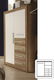Moderná šatníková skriňa kombinovaná s policovou v ľavej časti sa nachádza tyč na zavesenie oblečenia a na pravej strane je polica a zásuvky, ktoré ponúkajú dostatočný úložný priestor.