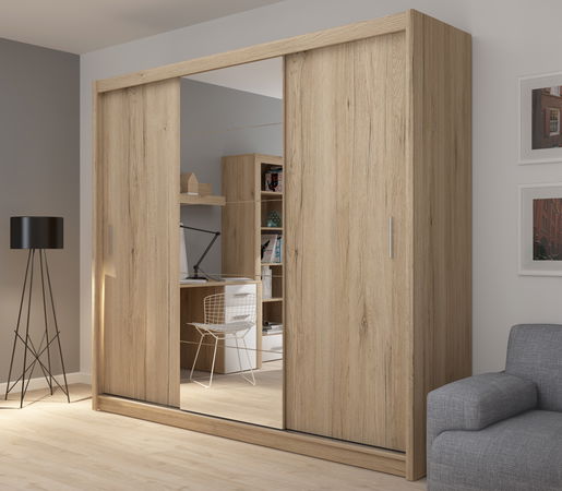 Šatníková skriňa Ferne 235 (Dub Sanremo) sa vyznačuje moderným dizajnom a kvalitným spracovaním. Je vyrobená z kvalitného materiálu - dubu Sanremo, ktorý poskytuje skrini pevnú konštrukciu a dlhú životnosť. Skriňa má výšku 216 cm a hĺbku 61 cm, čo ju robí vhodnou do väčších priestorov. Vnútri skrine nájdete dostatok miesta na uskladnenie svojho oblečenia a doplnkov. Skriňa má praktické zrkadlové dvere, ktoré vám ušetria miesto a zároveň vám umožnia skontrolovať váš vzhľad ešte pred odchodom z domu. Šatníková skriňa Ferne 235 je skvelou voľbou pre tých, ktorí si potrpia na kvalitu a moderný dizajn.
