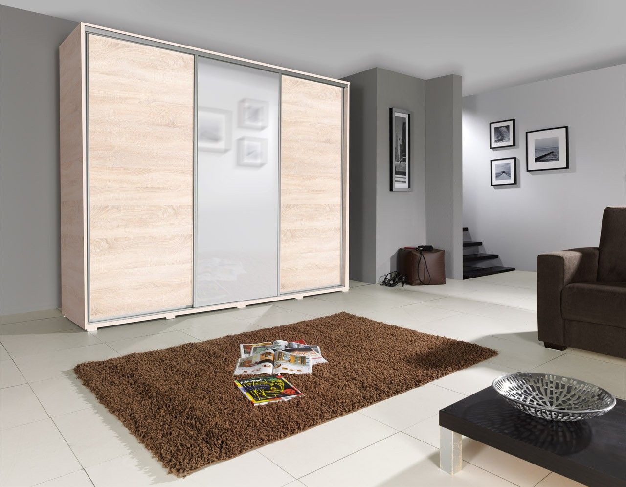 Šatníková skriňa s posuvnými dverami, ktoré sú na hlinikových vodiacich lištách. Materiál šatníkovej skrine je laminovaná drevotriesková doska. Čiastočne sú použité hrany PVC.