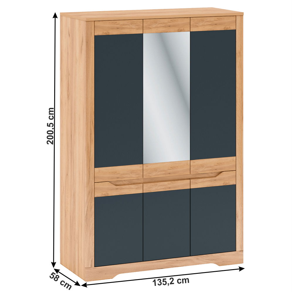 Šatníková skriňa Fistrea F výška 200.5 cm hĺbka 58 cm Dub craft zlatý + Grafit sivá je ideálnym doplnkom pre vašu spálňu. Materiál skrine je z DTD laminovanej/MDF, zatiaľ čo farby áutenticky evokujú dub craft zlatý a grafitovú sivú. Rozmery 135,2x58x200,5 cm a hrúbka materiálu korpusu 16 mm sú dokonalé pre všetky vaše potreby. Navyše, vrchná doska má hrúbku 22 mm, čo zaručuje pevnosť pre vaše najťažšie veci. Skriňa je vybavená vešiakovou tyčou, poličkami a zrkadlom, čím vám umožní efektívne organizovať svoje oblečenie a doplnky. Dodáva sa v demonte, preto je potrebné ju zmontovať. Skriňa Fistrea F je praktickou a krásnou voľbou pre vašu spálňu.