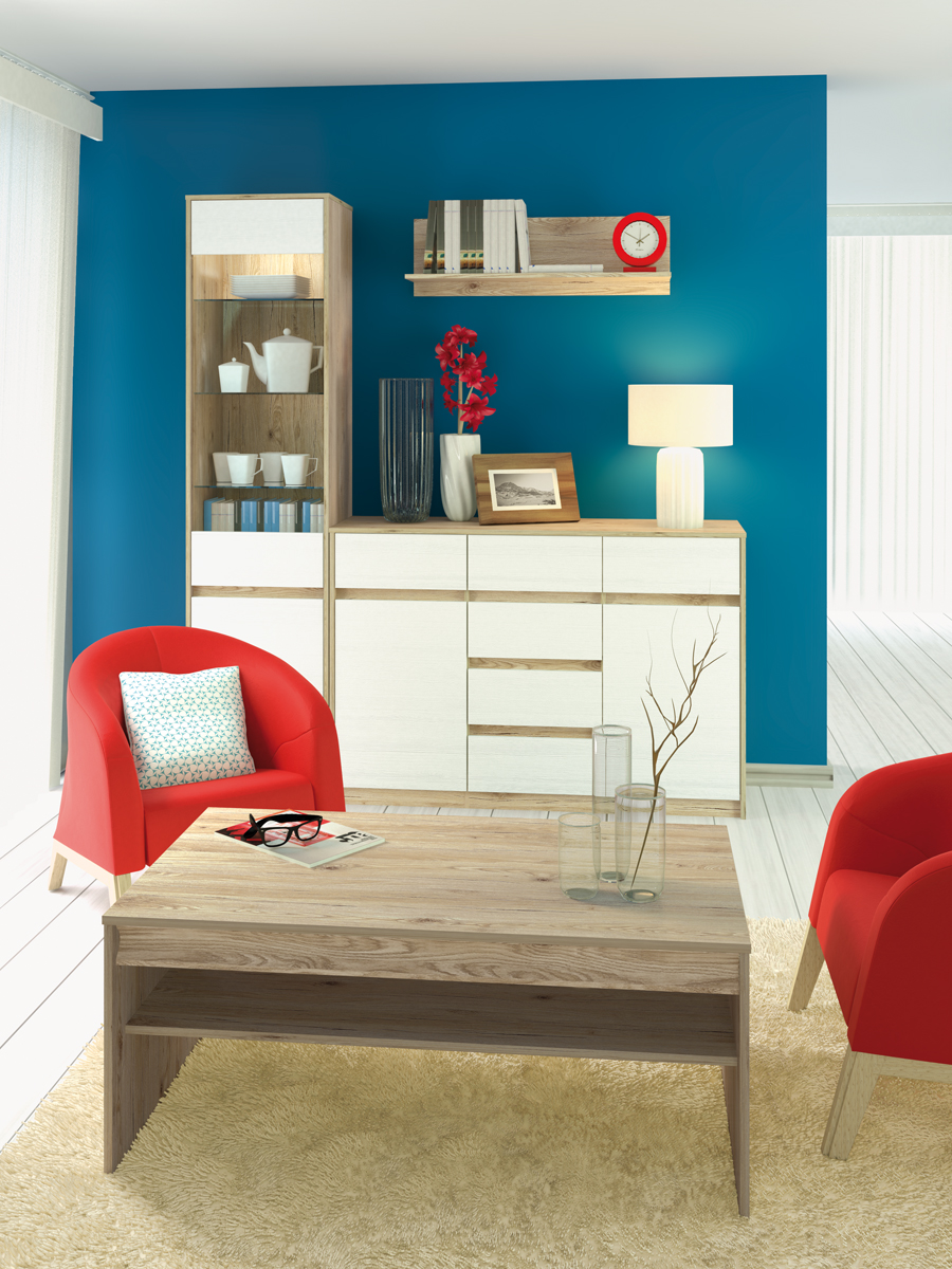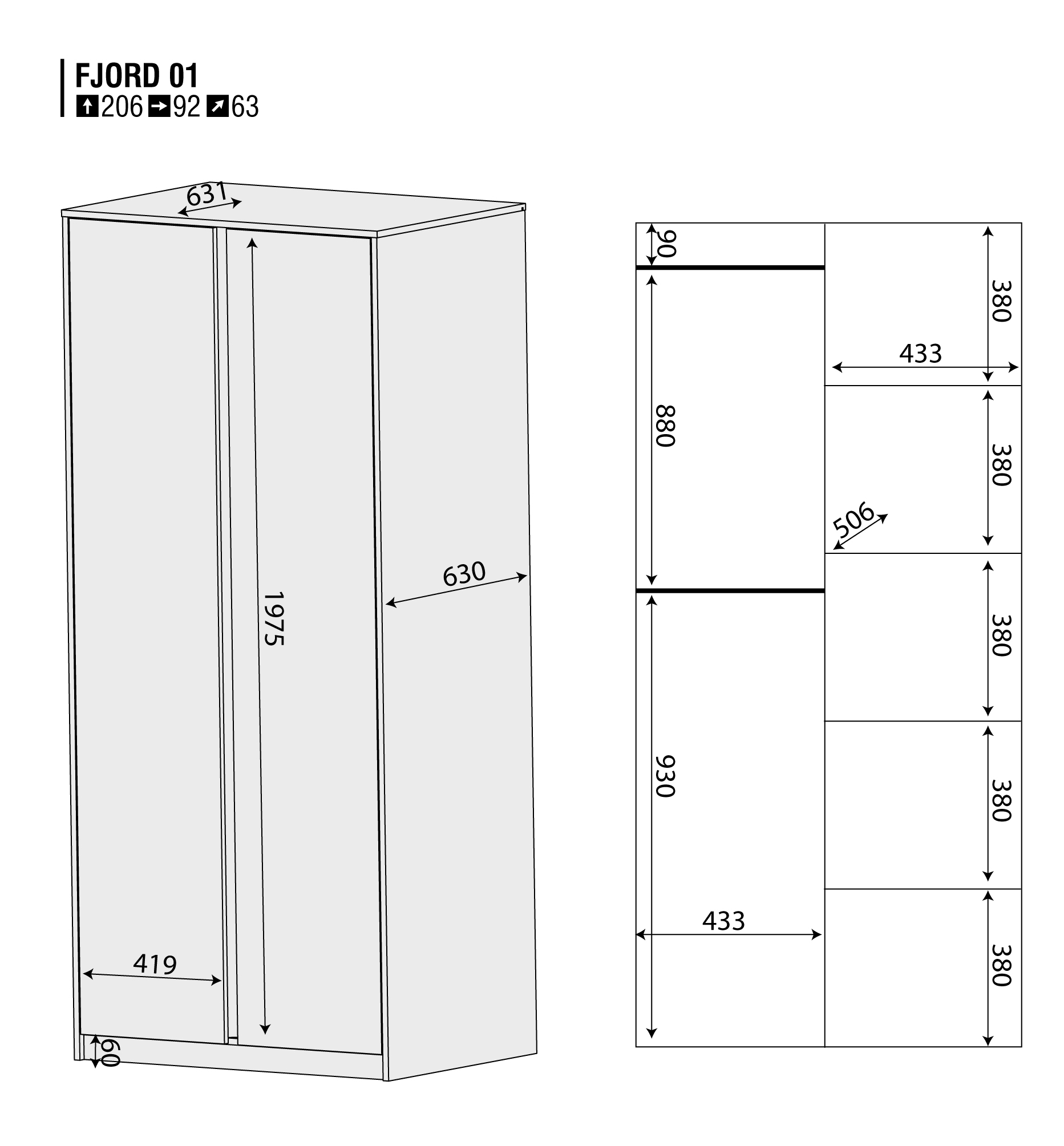 Systém Fjord je výsledkom inšpirácie a snahy vykúzliť „trochu Škandinávie” v interiéri. Všadeprítomná biela farba a motív dreva sa objavia vo forme nábytku, ktorý poteší svojou prirodzenosťou a funkčnosťou. Čelá sú vyrobené zo snehovo bielej laminovanej textúry „LINEA”, zatiaľ čo korpusy sú z drevotrieskovej dosky vo farbe dub San Remo, ktorý napodobňuje prirodzenú kresbu dreva. Súčasťou je tiež dekoratívny prvok profilovaných líšt vyrobených z MDF vo farbe korpusu. Certifikované tvrdené sklo zvyšuje bezpečnosť pri každodennom používaní. Dosky z lamina najvyššej kvality sú odolné voči poškriabaniu, vlhkosti a vysokým teplotám.