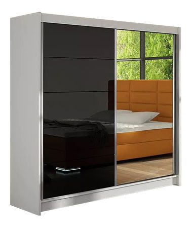 Šatníková skriňa Florencia 5 (biela + čierna) s výškou 215 cm a hĺbkou 58 cm je štýlový kus nábytku, ktorý dokonale zapadne do vášho interiéru. Farebná kombinácia v klasickom štýle a jednoduchý vzor umožňujú použitie skrine v každom interiéri. Okrem praktického účelu je skriňa aj výborným dekoratívnym prvkom a disponuje aj zrkadlom, ktoré opticky zväčší váš priestor. Korpus, deliace priečky a police sú vyrobené z laminovanej dosky hrubej 16 mm. Skriňa je vybavená posuvnými dverami s hliníkovými vodidlami SEVROLL MICRA s doživotnou zárukou, ktoré sú uzamknuteľné vo forme hliníkovej lišty pozdĺž dverí. Skriňa je vybavená aj ABS hranou a obsahuje 2 dvere. V balení nájdete všetky prvky potrebné na montáž a montážny návod. Vyberte si šatníkovú skriňu Florencia a užite si jednoduché a praktické riešenie pre váš interiér.