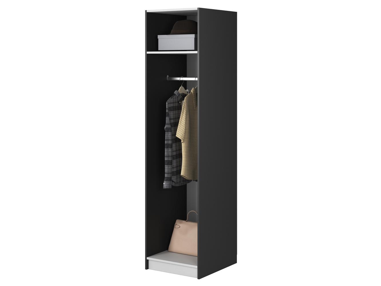 Snívate o elegantnom uložení oblečenia? Hľadáte praktický a elegantný šatník? Predstavujeme šatníkovú skriňu - spojenie štýlu a praktickosti pre váš priestor Jednodverová šatníková skriňa je elegantným a štýlovým riešením, ktoré bude skvelou alternatívou šatníkovej skrine. Jeho minimalistický dizajn sa perfektne hodí do moderného aj klasického interiéru. Celé telo je vyrobené z kvalitnej laminovanej drevotriesky, ktorá zaručuje odolnosť a jednoduché čistenie. Predná časť skrine má jemné lemovanie, ktoré jej dodáva trojrozmernosť a zaujímavý vizuálny efekt. Predná strana má predĺženú rukoväť z brúsenej ocele, ktorá dodáva rafinovaný vzhľad a kontrastuje s matným telom. Interiér šatníka bol navrhnutý tak, aby sa doň zmestili rôzne odevy. Koľajnica vám umožní zavesiť oblečenie, aby ste ho udržali v dobrom stave, zatiaľ čo horná polica vám umožní uložiť menej často používané oblečenie alebo doplnky. úložný priestor s dvoma zásuvkami poskytuje ďalší priestor na uloženie drobného príslušenstva alebo spodnej bielizne, čo umožňuje väčší poriadok v šatníku. Klasická farba dodáva miestnosti eleganciu a štýl a tlmené farby dokonale ladia s rôznymi dekoratívnymi štýlmi. Šatníková skriňa je nielen funkčným prvkom interiéru, ale aj estetickým akcentom, ktorý dokáže vniesť do priestoru nádych modernosti a triedy. Sada obsahuje dve úchytky – zlatú a čiernu, takže Model sa môžete rozhodnúť, ktorá sa viac hodí do vášho interiéru. Kľučku môžete vymeniť aj pri zmene vnútorného usporiadania bez nutnosti výmeny nábytku Detaily produktu: korpus vyrobený z laminovanej drevotriesky hrúbky 16 mm vo farbe Black 190 PE Kronospan, ktorá je odolná voči vlhkosti, teplote a poškriabaniu, čelá. z doskovej MDF potiahnutej PVC fóliou vo farbe korpusu, zlaté a čierne úchytky z brúsenej ocele, lišta dlhá 46,5 cm umiestnená vo výške 147 cm od základne, rozmery police: šírka 46,5 cm / výška 30 cm / hĺbka 55 cm, zásuvky umiestnené na guľových vodidlách zaisťujúcich voľné a plynulé vysúvanie, rozmery zásuvky: šírka 37 cm / výška 13 cm / hĺbka 38 cm, možnosť zmeny konfigurácie vo vnútri skrine v štádiu montáže.