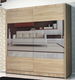 Šatníková skriňa s posuvnými dverami v modernom prevedení. Korpus aj dvere sú z kvalitného LTD vo farbe dub sonoma. Skriňa obsahuje aj praktické zrkadlo. V ľavej časti sa nachádzajú poličky a v časti pravej vešiaková tyč, nad ktorou je umiestnená polička. Hrany sú ohraničené ABS páskou.