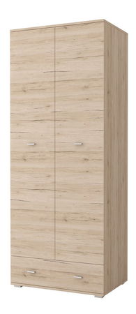 Šatníková skriňa - Gredi (san remo + piesková) s výškou 202 cm, šírkou 80 cm a hĺbkou 52 cm je vyrobená z kvalitnej 16 mm hrubej drevotriesky s odolnými 0,5 mm ABS hranami. Táto skriňa ponúka praktické úložné riešenie so svojimi dvomi dverami, jednou zásuvkou a jednou tyčou, ideálne pre usporiadanie vášho oblečenia. S PVC úchytmi a plastovými nožičkami je táto skriňa nielen praktická, ale aj pekným doplnkom vášho interiéru.