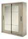 Šatníková skriňa s posuvnými dverami v modernom prevedení. Korpus je vyrobený z kvalitného LTD je vo farbe dreva SanRemo. Dvere sú osadené zrkadlom. Vo vnútri sa okrem vešiakovej tyče nachádzajú aj poličky. Hrany na skrini sú ohraničené ABS páskou, ktorá jú chráni pred poškodením. Posuvné dvere sú usadené v hliníkových pojazdoch.