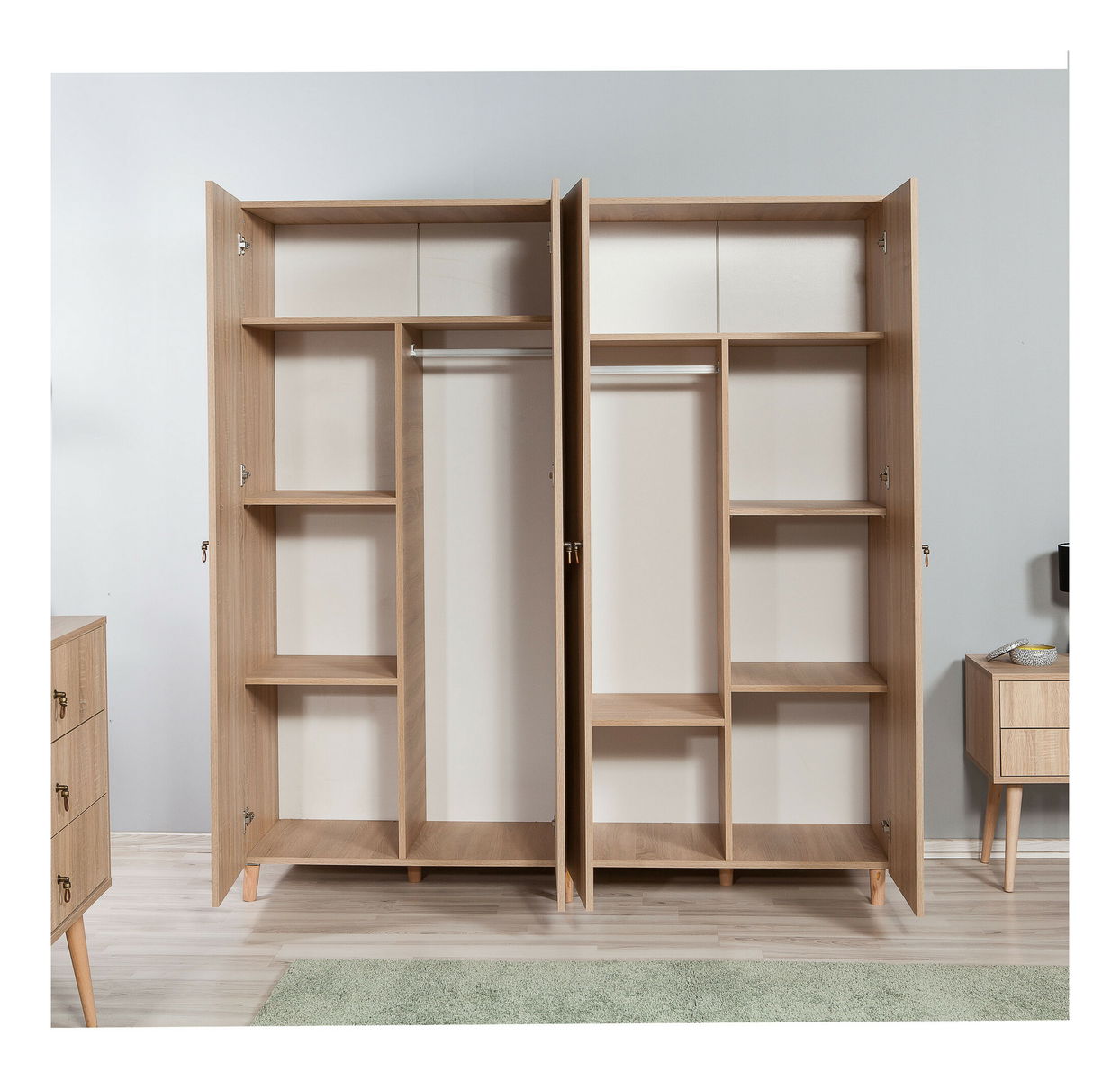 hrúbka: 18 mm, hrabové nohy, kovové rukoväte, uv náter, šírka: 180 cm, výška: 192 cm, hĺbka: 52 cm, veľkosť hornej police: šírka: 90 cm, výška: 30 cm, výška bočnej police: 47 cm, výška nôh: 10 cm