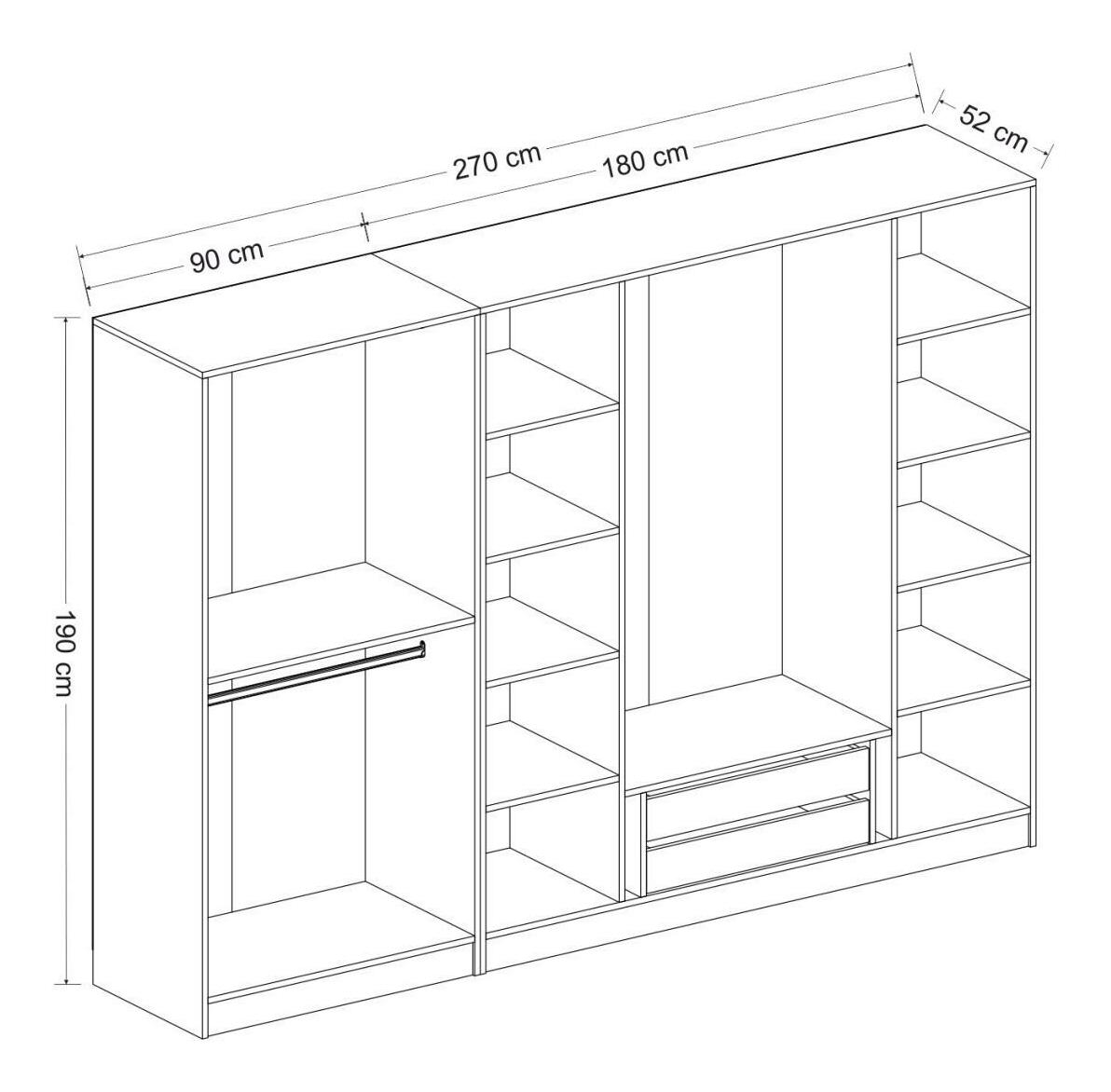 hrúbka: 18 mm, šírka: 270 cm, výška: 210 cm, hĺbka: 52 cm