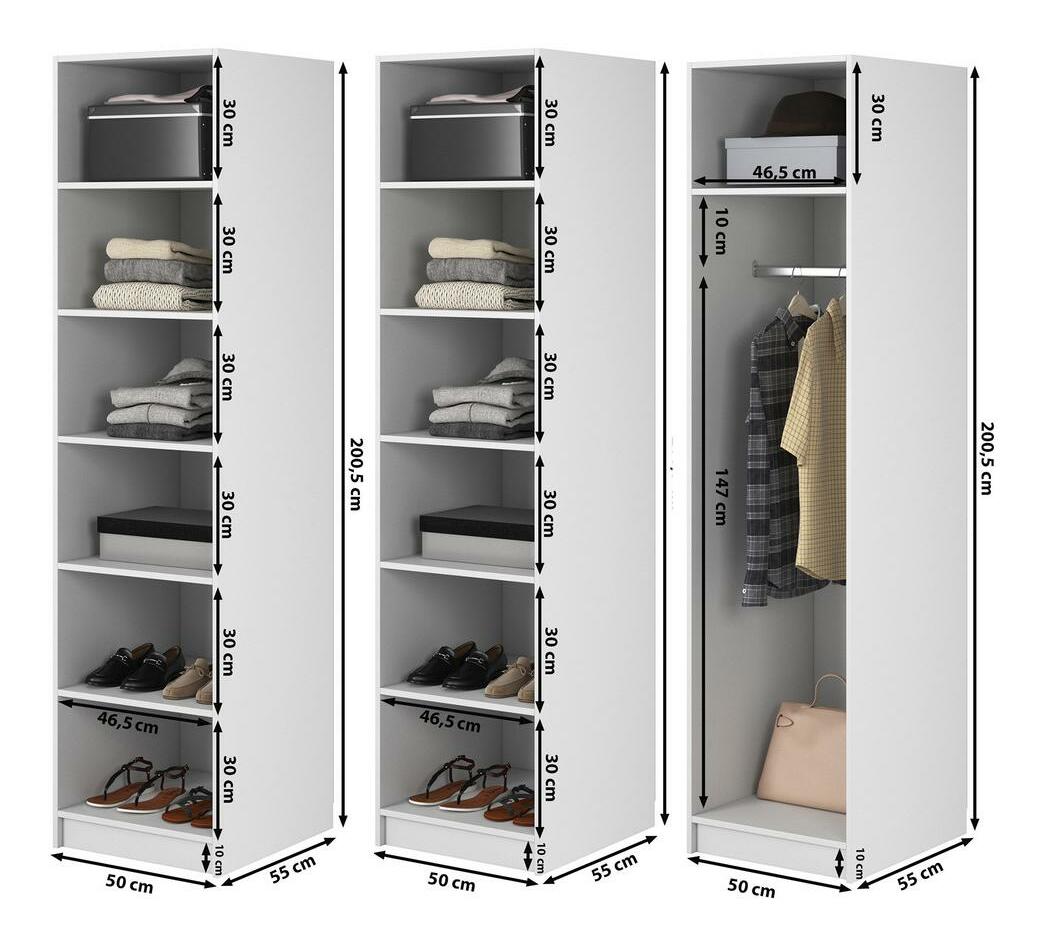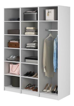 Snívate o elegantnom uložení oblečenia? Hľadáte praktické a elegantné dotvorenie vášho šatníka? Predstavujeme šatníkovú skriňu - spojenie štýlu a praktickosti pre váš priestor Šatníková skriňa je elegantným a štýlovým riešením, ktoré bude skvelou voľbou aj pre malé skrine. Jeho minimalistický dizajn sa perfektne hodí do moderného aj klasického interiéru. Celé telo je vyrobené z kvalitnej laminovanej drevotrieskovej dosky, ktorá zaručuje odolnosť a jednoduché čistenie. Vnútorný priestor je navrhnutý tak, aby sa doň zmestili rôzne kusy oblečenia a doplnkov, na tyči môžete zavesiť oblečenie, aby ste ho udržali v dobrom stave, zatiaľ čo horná polica vám umožní uložiť menej často používané oblečenie alebo doplnky efektívne triediť oblečenie alebo prísady. Klasická a univerzálna farba dodáva miestnosti eleganciu a štýl a dokonale ladí s rôznymi dekoratívnymi štýlmi. Správne nakonfigurovaný šatník vám umožní ľahko sa zbaviť chaosu a udržiavať poriadok. V tejto šatníkovej skrini je funkčnosť rovnako dôležitá ako vzhľad, preto ju môžete umiestniť aj na viditeľné miesta bez obáv z neporiadku v interiéri Detail produktu: korpus vyrobený z laminovanej drevotriesky hrúbky 16 mm vo farbe White 110 PE Kronospan, ktorá je odolná. proti vlhkosti, teplote a poškriabaniu, tyč dlhá 46,5 cm umiestnená vo výške 147 cm od základne, rozmery police: šírka 46,5 cm / výška 30 cm / hĺbka 55 cm, možnosť zmeny konfigurácie vnútri skríň pri montáži.
