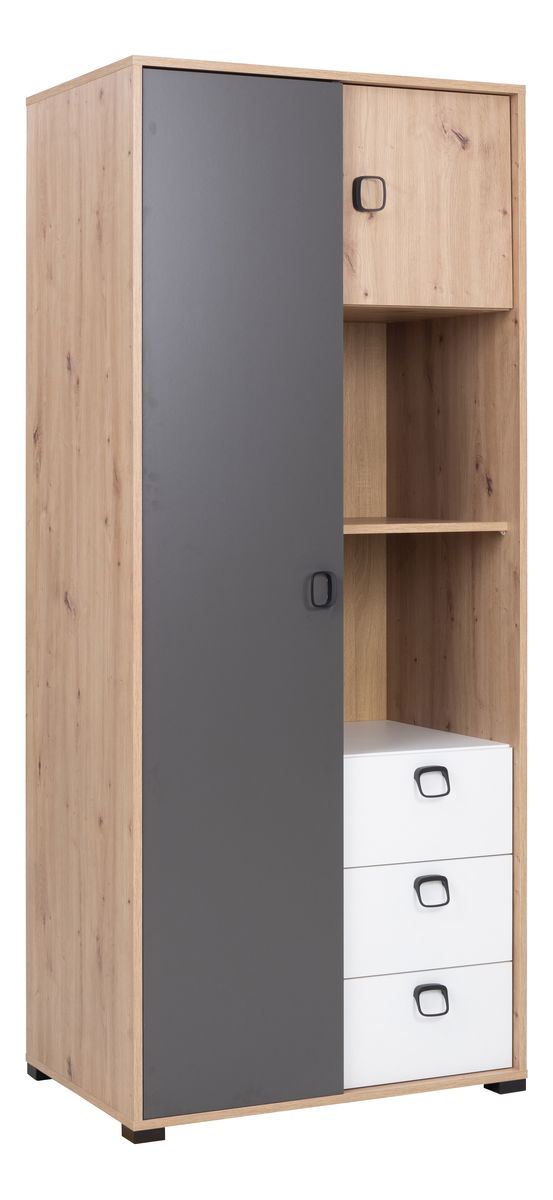 Šatníková skriňa Kevyt 2 (dub artisan + biela + grafit)