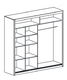 Šatníková skriňa s posuvnými dverami v modernom farebnom. Korpus aj dvierka sú z kvalitného LTD vo farbe dub sonoma. Dvere obsahujú praktické dýmové zrkadlo. Usporiadanie políc vo vnútri je vyobrazené na obrázku. Hrany pri skrini sú ohraničené ABS páskou.