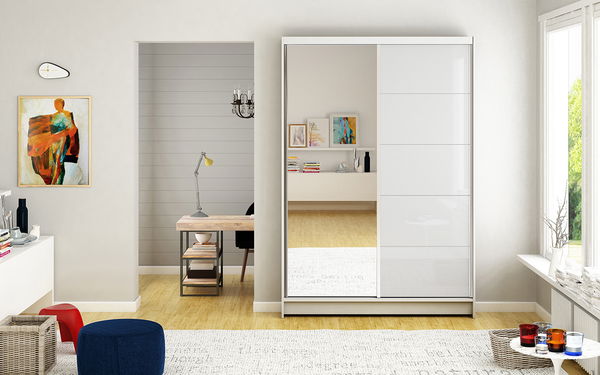 Šatníková skriňa Marisol 5 (biela) s výškou 200 cm a hĺbkou 58 cm je ideálnym riešením pre všetky ženy, ktoré hľadajú dokonalé miesto na uloženie svojho oblečenia a doplnkov. Bezúchytkové posuvné dvere umožňujú jednoduchý prístup k šatníku a ponúkajú možnosť konfigurácie jeho vzhľadu a obsahu z dostupných modelov. Výber je z mnohých farebných prevedení a kombinácií prednej strany v matnom, lesklom alebo zrkadlovom prevedení. Skriňa je vyrobená z kvalitnej 16 mm laminovanej dosky a má PVC okraj a lesk na prednej strane (lacobel sklo). Bežiaci systém SEVROLL MICRA je k dispozícii s doživotnou zárukou a hliníková rukoväť po celej dĺžke prednej časti umožňuje jednoduché otváranie a zatváranie dverí. Táto skriňa je skvelou voľbou pre každého, kto hľadá štýlové a praktické riešenie pre svoj šatník.
