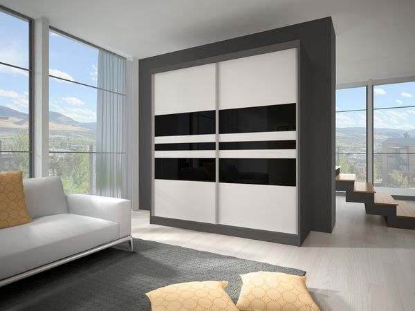 Šatníková skriňa Mebur 01 230 (grafit + biela + čierne sklo)