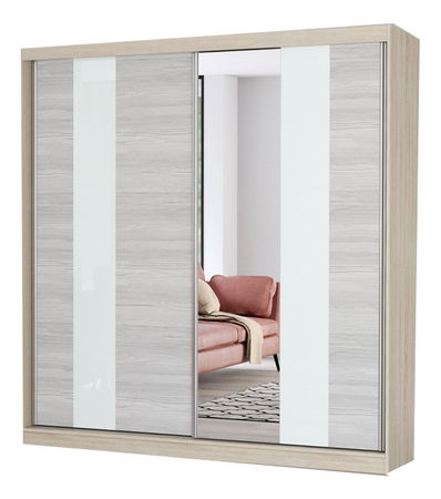 Šatníková skriňa Mebur 32 200 (dub sonoma + kathult + biele sklo + zrkadlo)