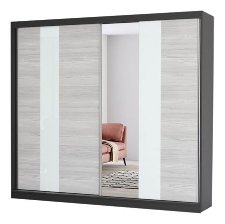 Šatníková skriňa Mebur 32 230 (čierna + kathult + biele sklo + zrkadlo)