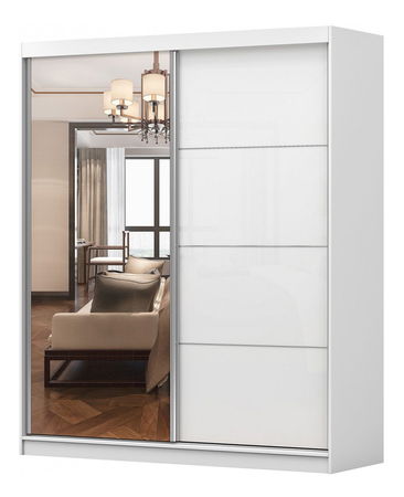 Šatníková skriňa Mebur 35 180 (biela + zrkadlo + lesk biely)