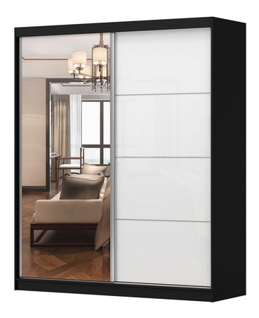 Šatníková skriňa Mebur 35 180 (čierna + zrkadlo + lesk biely)
